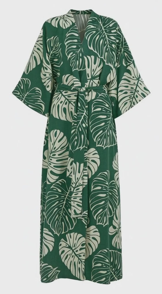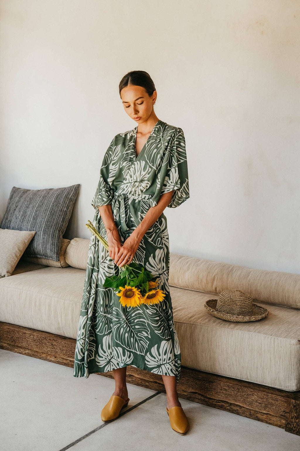 Inspired by the tropical forest, this kimono can be worn anytime and anywhere. This one-size-fits-most approach will flatter many figures with our everchanging sizing. We created garments that are meant to last season after season. Each garment is carefully tailored made by our small team of women artisans in Bali from the comfort of their own homes.